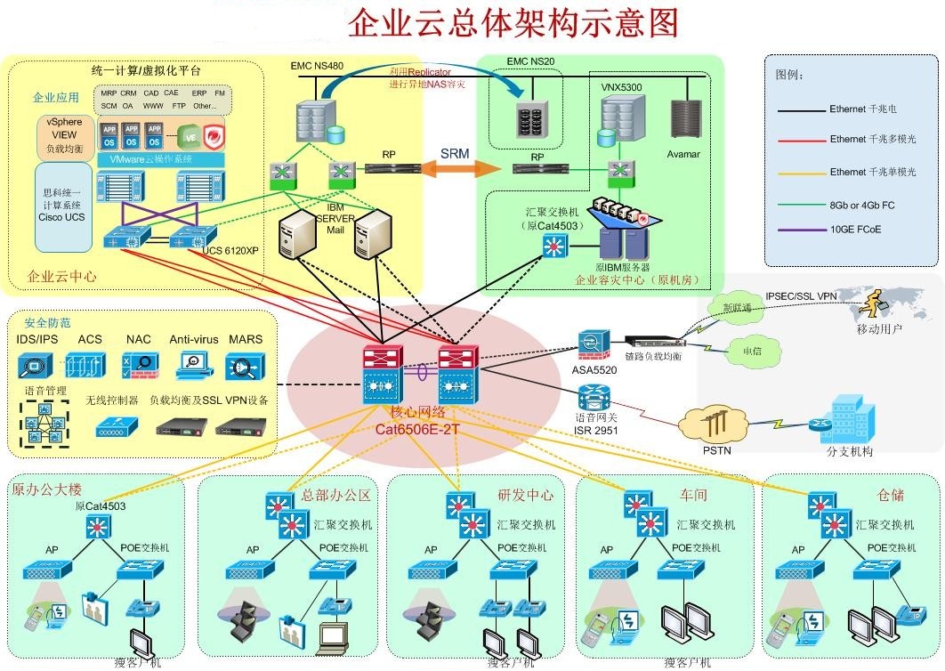 我公司于2012年承建了某企业新大楼整体IT基础架构项目,某企业IT系统建设要充分利用云计算的设计思想,利用当今先进的IT技术,建设某企业内部的私有云环境。本期项目主要由企业无边界网络系统、云中心、企业统一通信系统建设三部分构成。