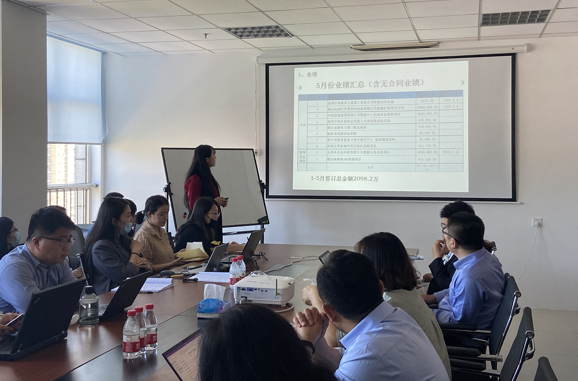 首先由我司商务部田秋月对公司五月份的业绩、项目和人事行政工作进行了汇总,对下一步商务及行政工作计划进行了详细讲述,肯定了我司前五个月的工作情况,给予各部门开展接下来工作的信心,但同样提出我们现阶段还需要增强各部门工作的协调合作,这样才能确保每项工作的完整运行;