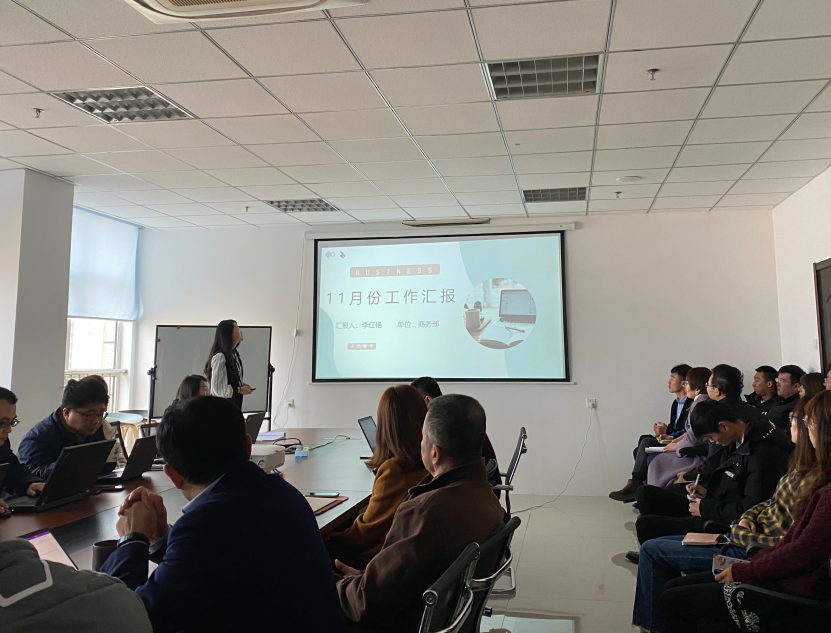 会上,我司商务部李红艳,对我司十一月份的项目跟进情况、行政工作完成情况以及人事变动情况进行了总结,并对下个月的工作计划做出了概述。